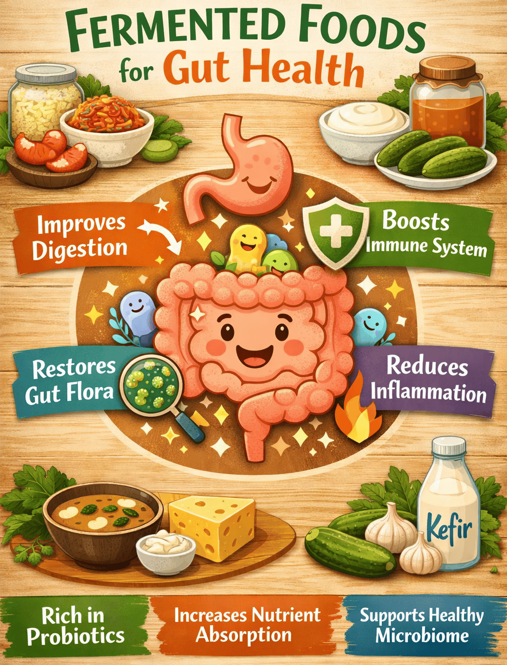 Separately, recent scientific reviews summarize evidence that fermented foods like yogurt, kefir, kombucha, and fermented vegetables can shift gut microbiome composition toward more beneficial taxa (though results vary by food type, dose, and the person).