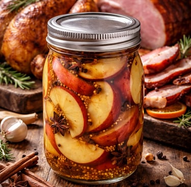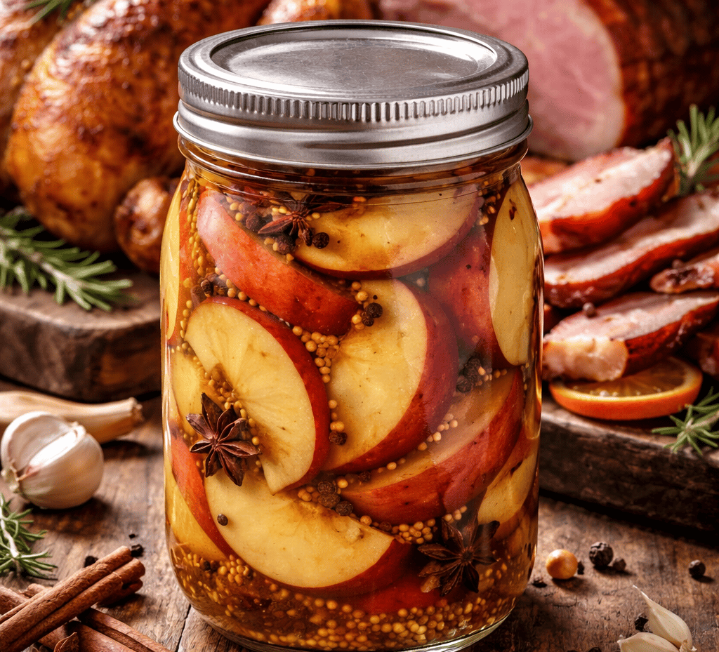 Sweet-tart apples quick-pickled with cinnamon, clove, and citrus—perfect for cheese boards, roasts, and festive meals.