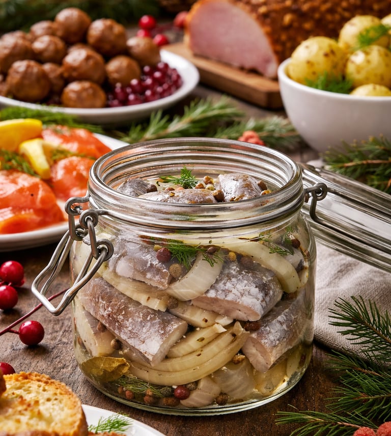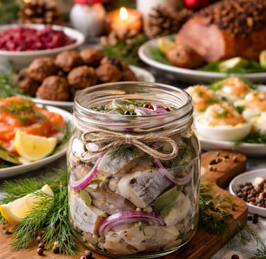 Homemade pickled herring is a classic Scandinavian holiday dish, especially popular around Christmas and New Year.