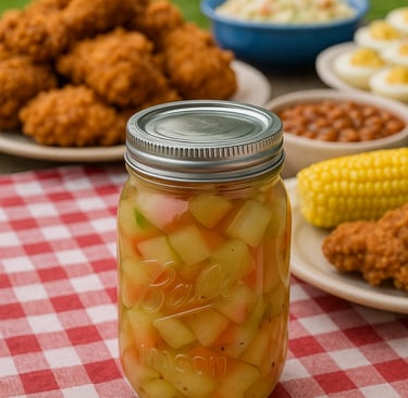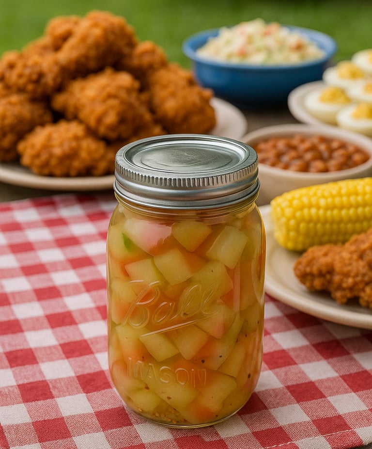 Serve chilled as a Southern summer side — crisp, tangy, and beautifully golden.